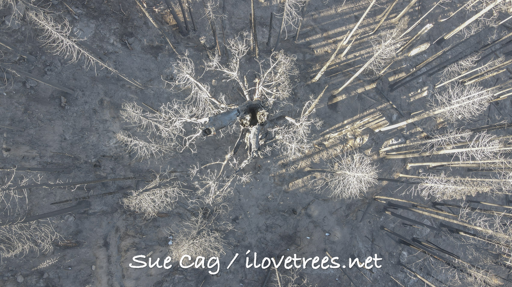 Aerial view of Mountain Home Grove. Completely scorched forest and many dead skeleton sequoias (barely visible) in front. “Island of green” strip in the middle. Brown canopies behind them. Scores of heat scorched trees continue to the right out of view. November 21st, 2020.Aerial view of Mountain Home Grove. November 28th, 2020.Aerial view of Mountain Home Grove. November 28th, 2020.View of the living section of Mountain Home Grove after the SQF Complex / Castle Fire. Dead sequoias skeletons stand in the foreground, living giants soar behind them. The beauty disguises the loss. November 28th, 2020.Same view with a tiny bit more included in front. November 28th, 2020.Aerial view of Mountain Home Grove. November 28th, 2020.Aerial view of Mountain Home Grove. November 28th, 2020.Aerial view of the southern end of Mountain Home Grove. November 28th, 2020.Two plumes visible from afar, 3 months “after” the fire. December 9th, 2020.Fuzzy zoom in to the Bonsai Tree, plus others lost. December 9th, 2020.